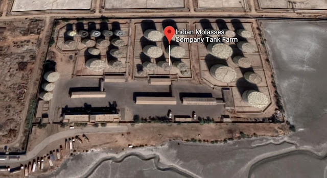 ■「発災場所」ははっきりしない。爆発・火災の発生場所は、簡易常圧蒸留装置に付帯する原油貯蔵タンクまたは原油をディーゼル燃料に加工する簡易常圧蒸留装置の設備で発災したとみられる。原油貯蔵タンクとすれば、貯油エリアの大型貯蔵タンクではなく、簡易常圧蒸留装置に付帯し、圧力変動を緩和・安定させるために使用される小型のタンク(容器)ではないかと思われる。グーグルマップで調べても、情報が少なすぎて、場所を特定できなかった。